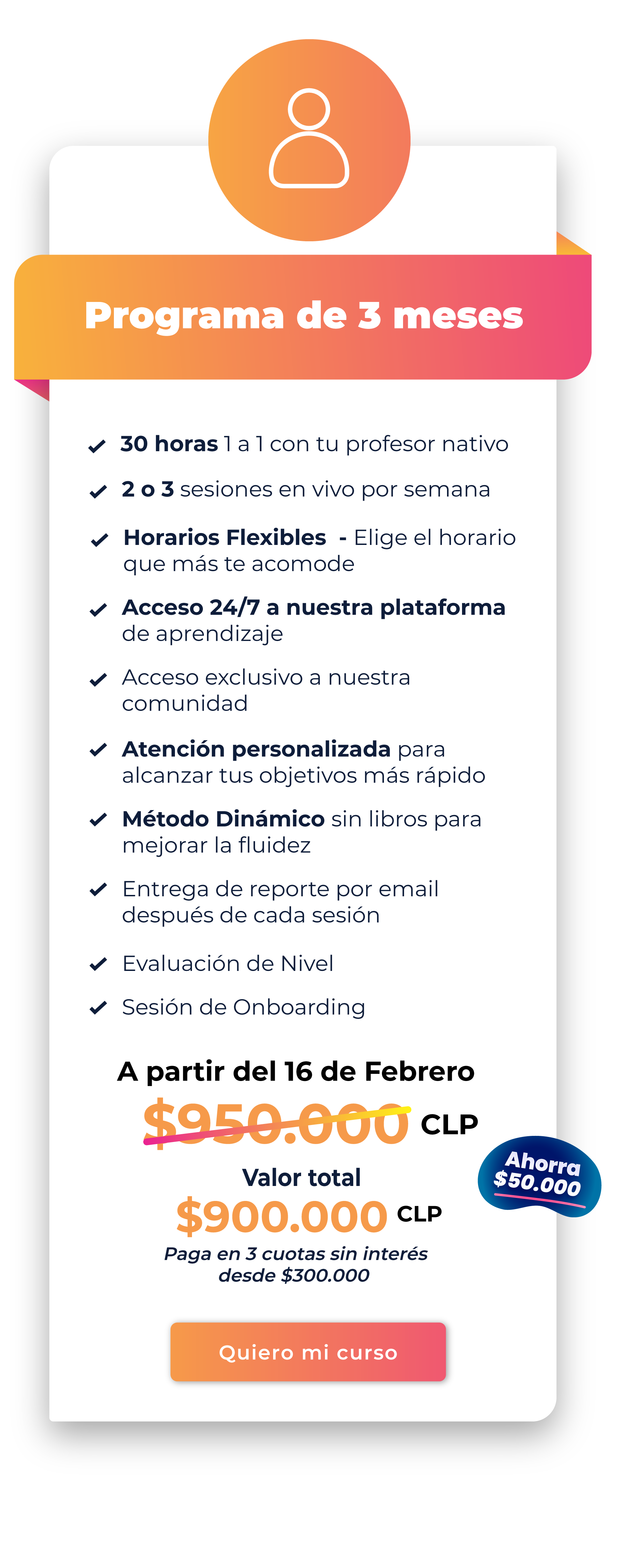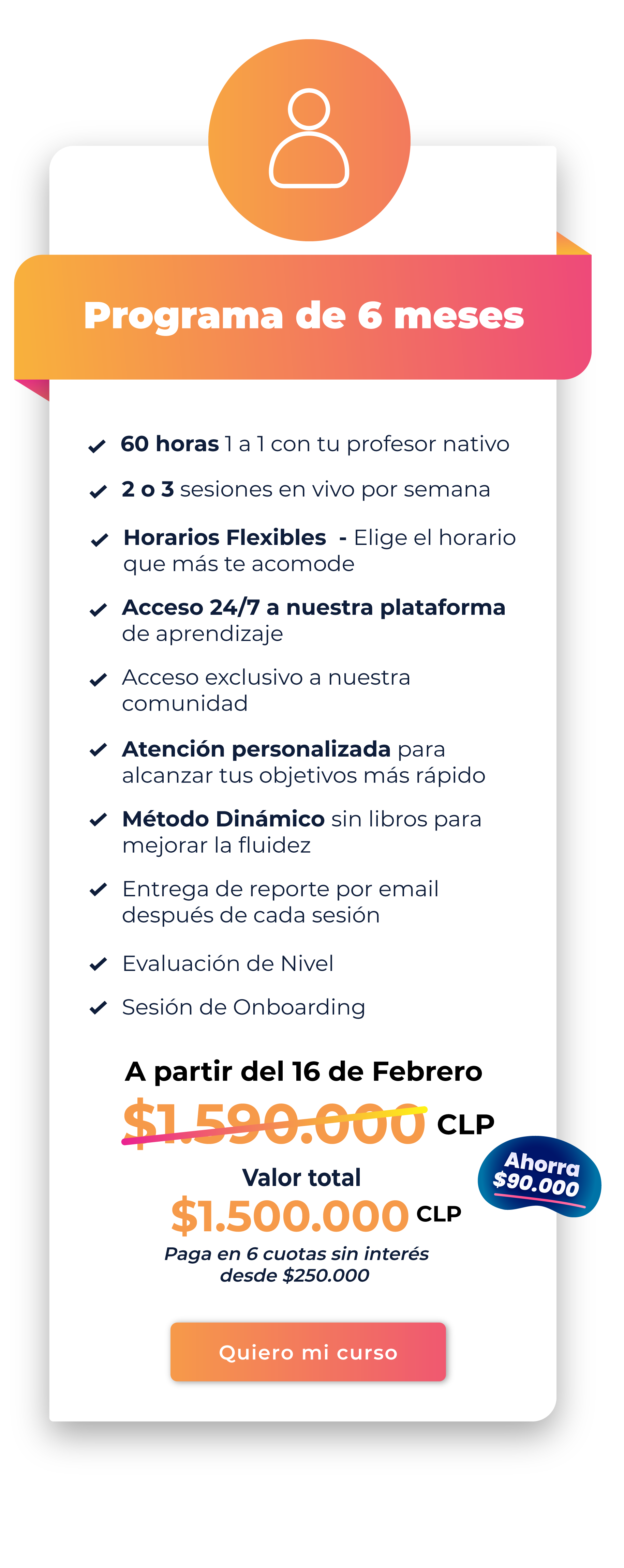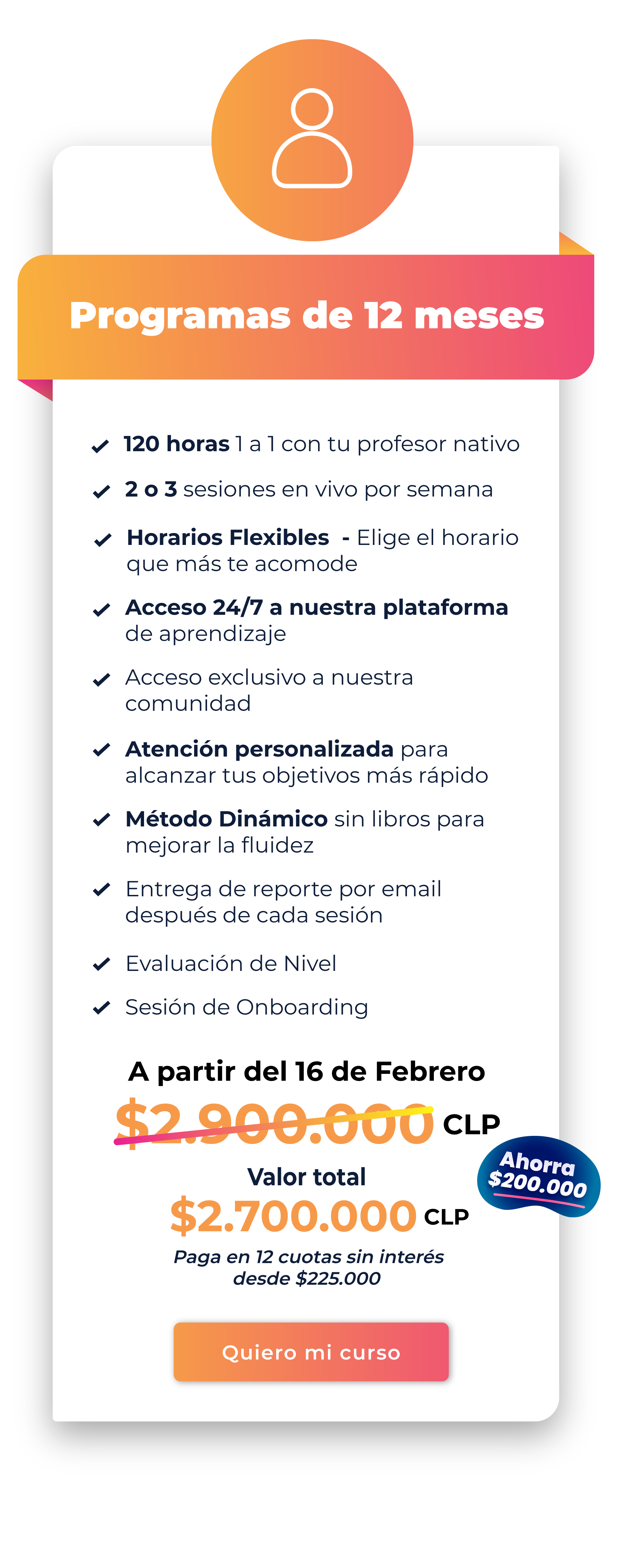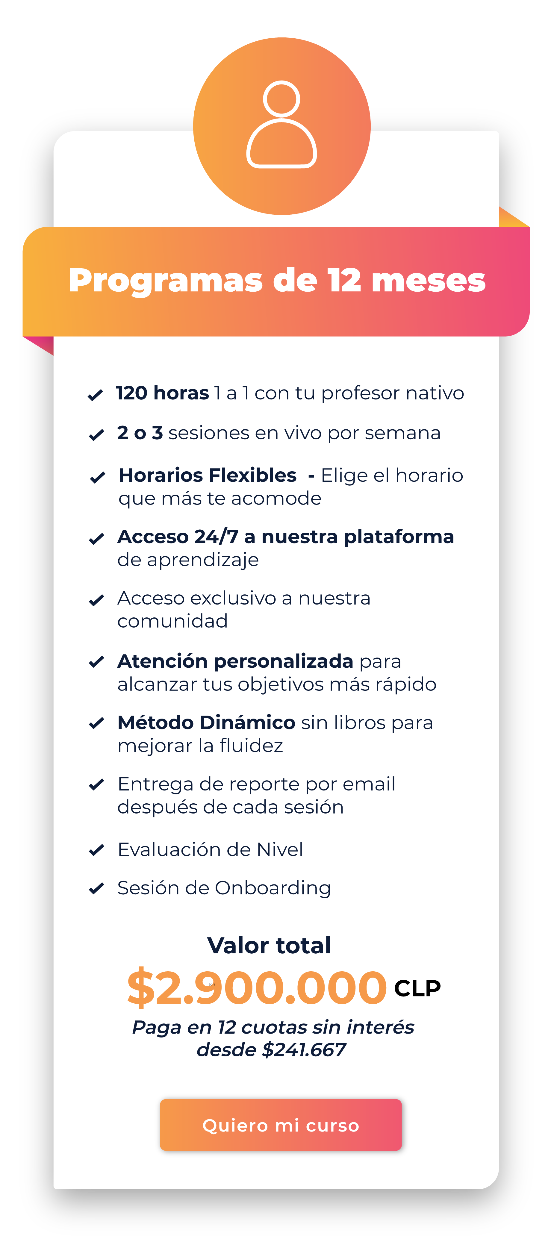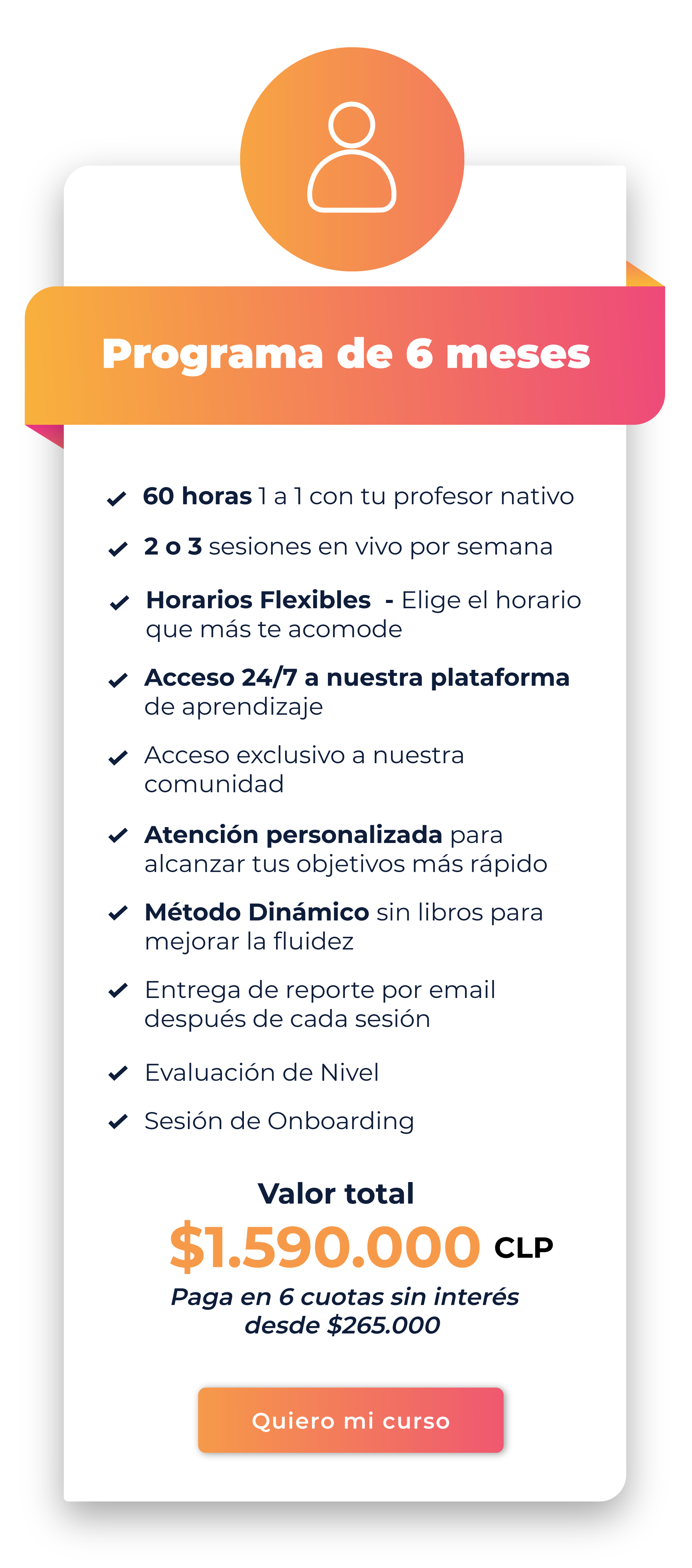 con nuestros cursos personalizados de ingles en vivo, basadas en la conversación, solo el profesor y tú.